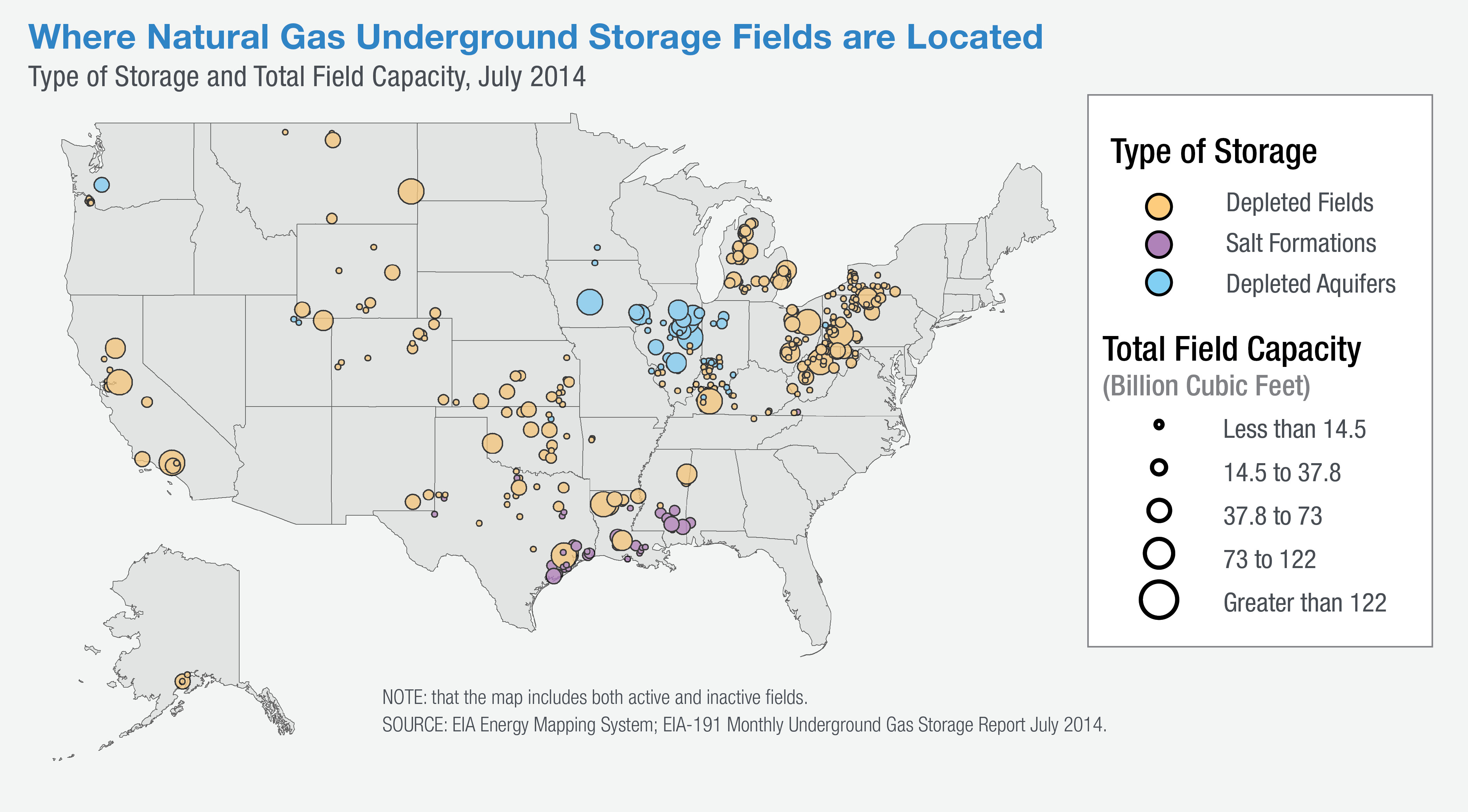 - Underground storage working natural gas capacity in the United States increased 18.2 percent between 2002 and 2014, helping to ensure that natural gas is available when it is needed most.